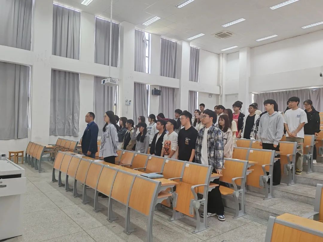 5月9日中午,开班仪式在骛新楼123阶梯教室举行,院党支部书记陆永来、副书记潘颖昕、团总支负责人蔡佳艳老师出席。开班仪式由潘颖昕副书记主持,在庄严的国歌声中拉开帷幕。