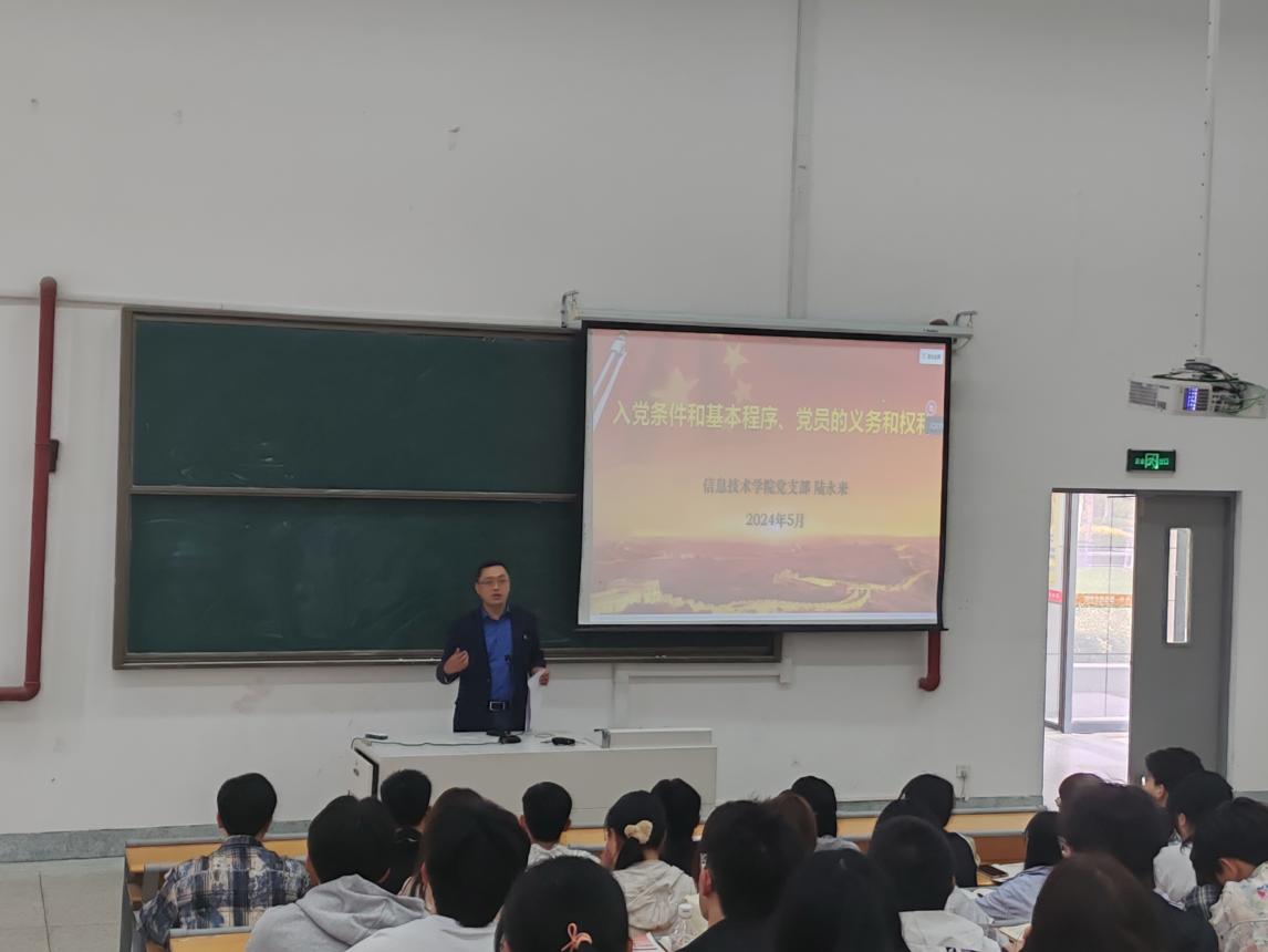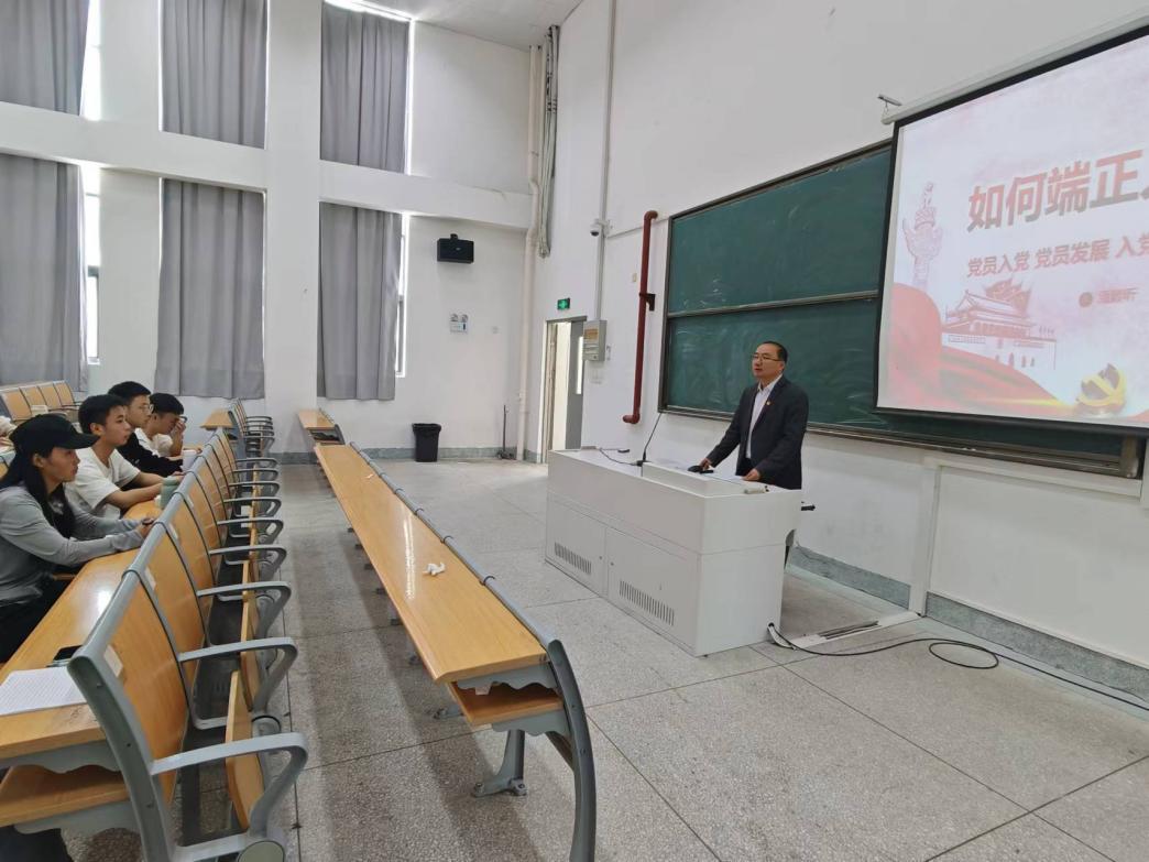 本次党校初级班主要通过专题讲座的形式,对同学们开展党的基本知识教育。开班仪式结束后,陆永来书记通过PPT,为学员们介绍了党员条件、入党基本程序和党员的义务、权利。