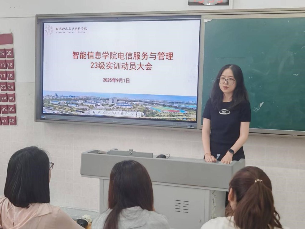 9月1日下午,智能信息学院在骛新楼120教室召开了电信服务与管理(专)23班实训动员会。南通电信开发区支局政企部主任祁莹莹、客户经理张婧,学院副院长曹均平、团总支书记蔡佳艳、辅导员张严文,以及电信管理(专)23班全体同学共同参会,会议由潘颖昕老师主持。